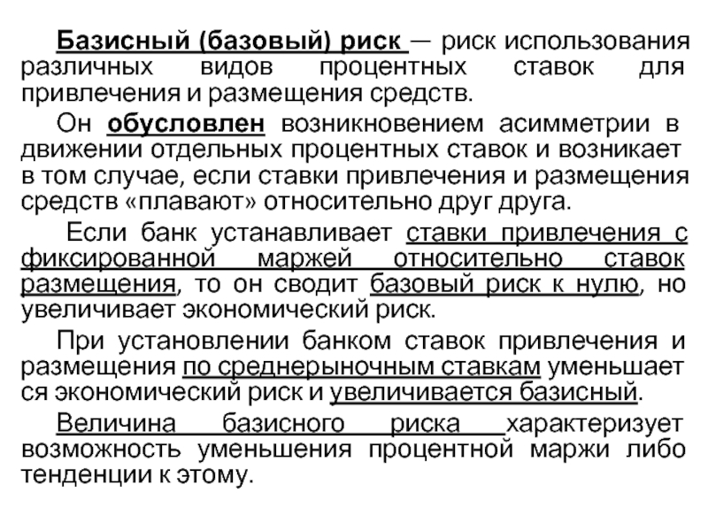 Слайд 4 Базисный (базовый) риск — риск использования различных видов процентных ставок