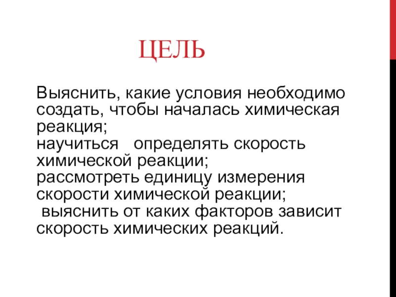 Выяснить, какие условия необходимо создать, чтобы началась химическая реакция;