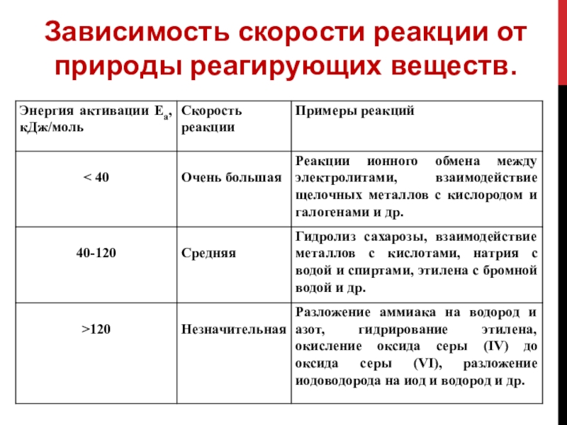 Слайд 15Зависимость скорости реакции от природы реагирующих веществ.