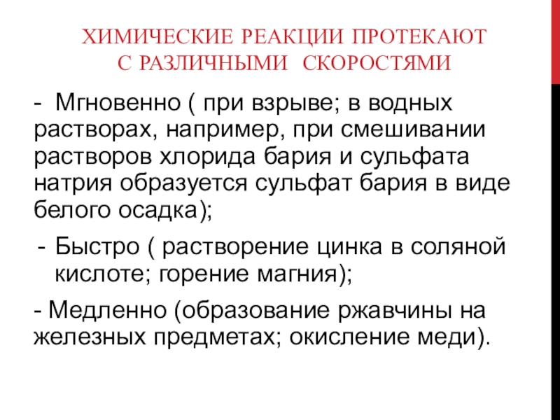 Быстро ( растворение цинка в соляной кислоте; горение магния);