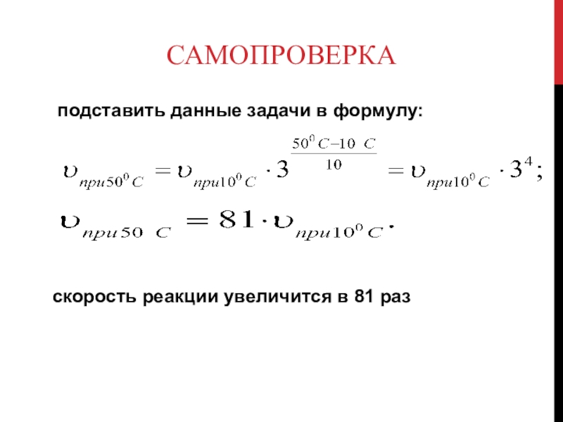 Слайд 10Задача на применение знаний по «Скорости химических реакций»