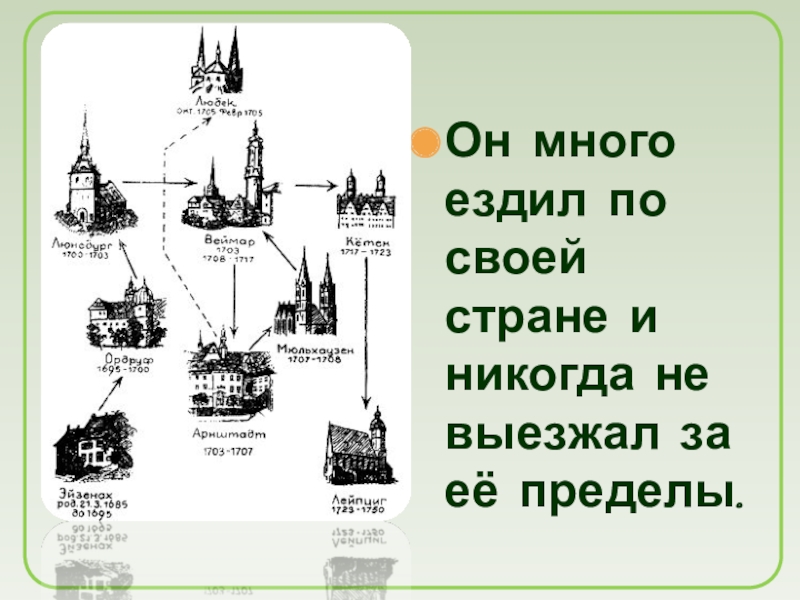 Слайд 23Он много ездил по своей стране и никогда не выезжал