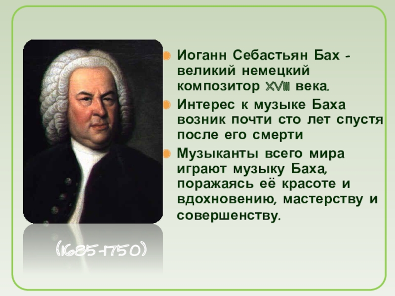 Слайд 19Иоганн Себастьян Бах - великий немецкий композитор XVIII века.