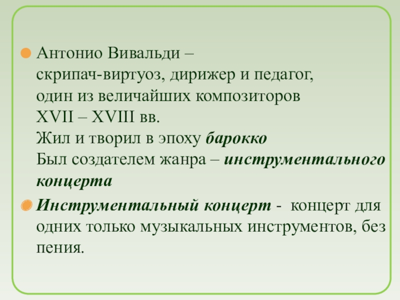 Был создателем жанра – инструментального концерта