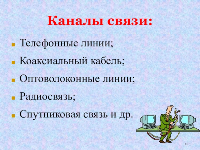 Слайд 9Обязательными компонентами любой сети являются каналы связи (проводные и беспроводные),