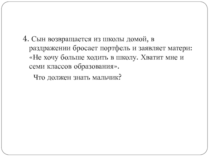 Слайд 264. Сын возвращается из школы домой, в раздражении бросает портфель