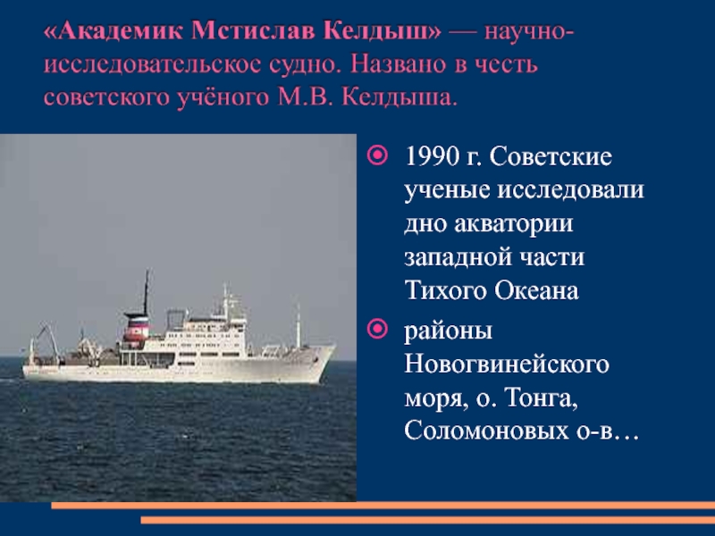 Слайд 131990 г. Советские ученые исследовали дно акватории западной части Тихого