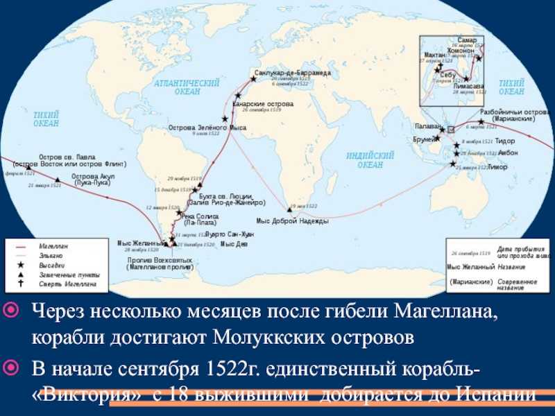 начале сентября 1522г. единственный корабль- «Виктория» с 18 выжившими добирается до