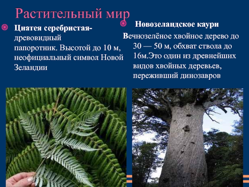 Слайд 22Циатея серебристая- древовидный папоротник. Высотой до 10 м, неофициальный символ Новой