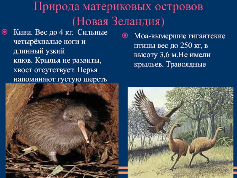 Слайд 21Moa-вымершие гигантские птицы вес до 250 кг, в высоту 3,6