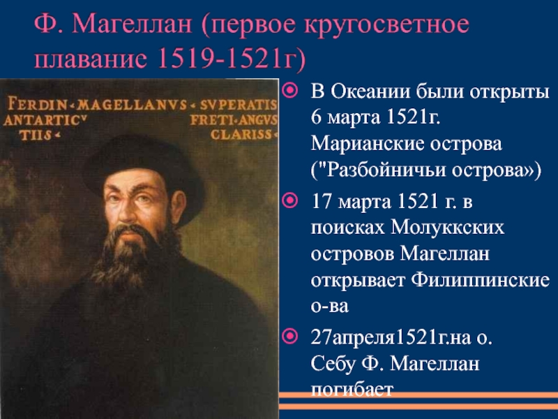 17 марта 1521 г. в поисках Молуккских островов Магеллан открывает