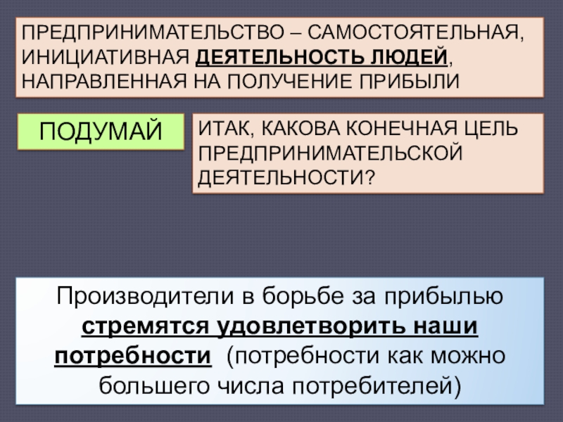 стремятся удовлетворить наши потребности (потребности как можно большего числа потребителей)ПОДУМАЙ