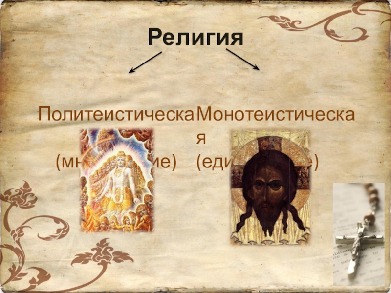 Религия Политеистическая(многобожие) Монотеистическая(единобожие)