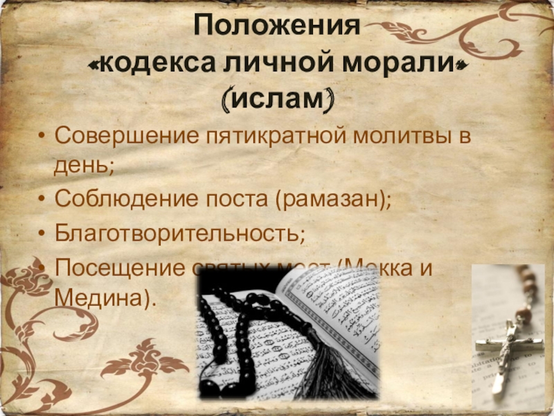 Слайд 11Положения «кодекса личной морали» (ислам)