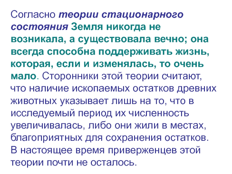 Слайд 4Согласно теории стационарного состояния Земля никогда не возникала, а существовала