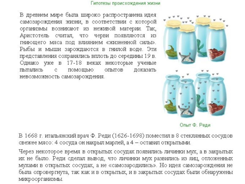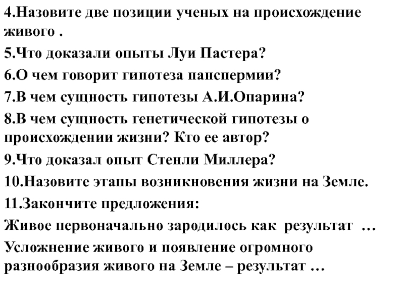Слайд 204.Назовите две позиции ученых на происхождение живого .