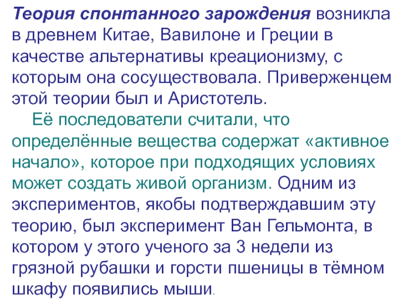 Слайд 6 Теория самопроизвольного зарождения жизни существовала еще в древнем Египте, Китае