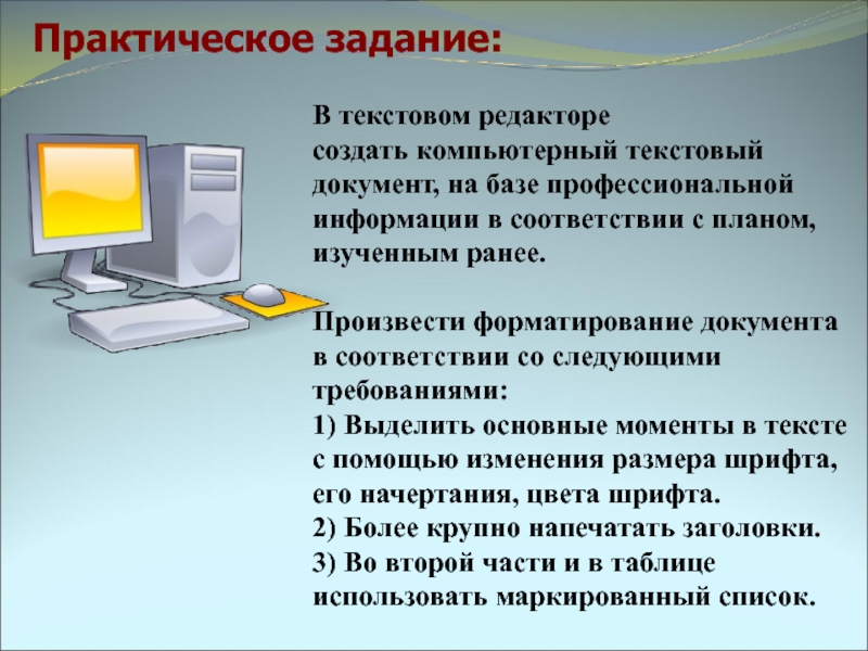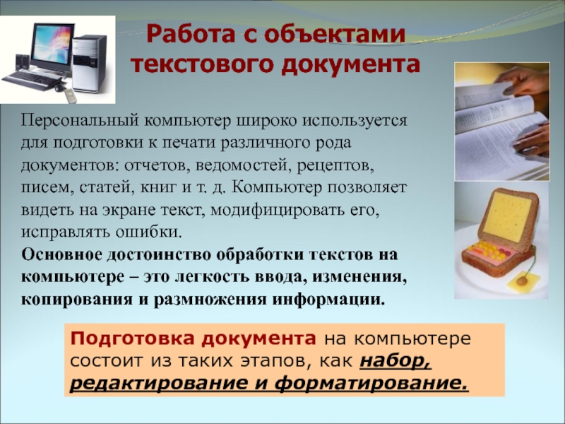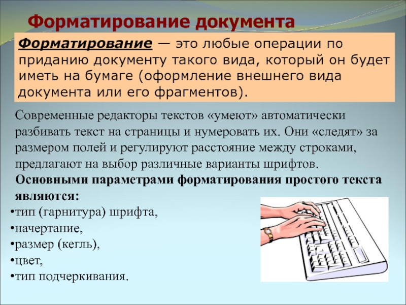 Можете ли вы дать определения процессов создания, редактирования и форматирования документа?