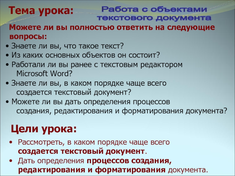 ответить на следующие вопросы:Знаете ли вы, что такое текст?
