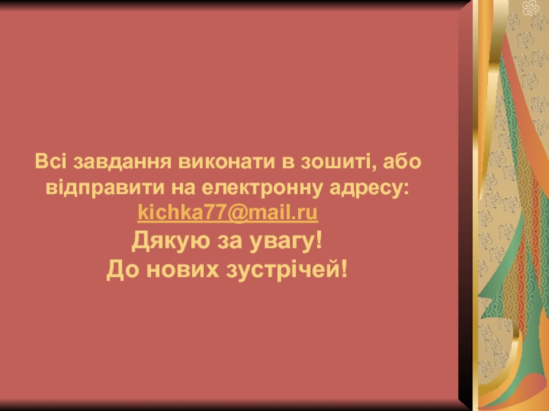 Если не удалось найти и скачать доклад-презентацию, Вы можете заказать его на нашем сайте. Мы постараемся найти нужный Вам материал и отправим по электронной почте. Не стесняйтесь обращаться к нам, если у вас возникли вопросы или пожелания: