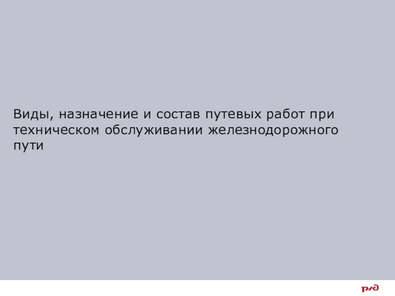 Слайд 3Виды, назначение и состав путевых работ при техническом обслуживании железнодорожного
