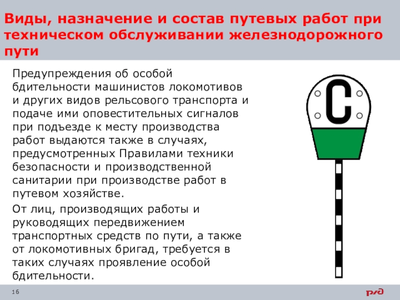 Слайд 16Виды, назначение и состав путевых работ при техническом обслуживании железнодорожного