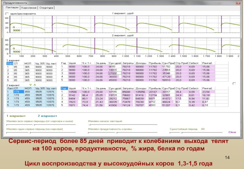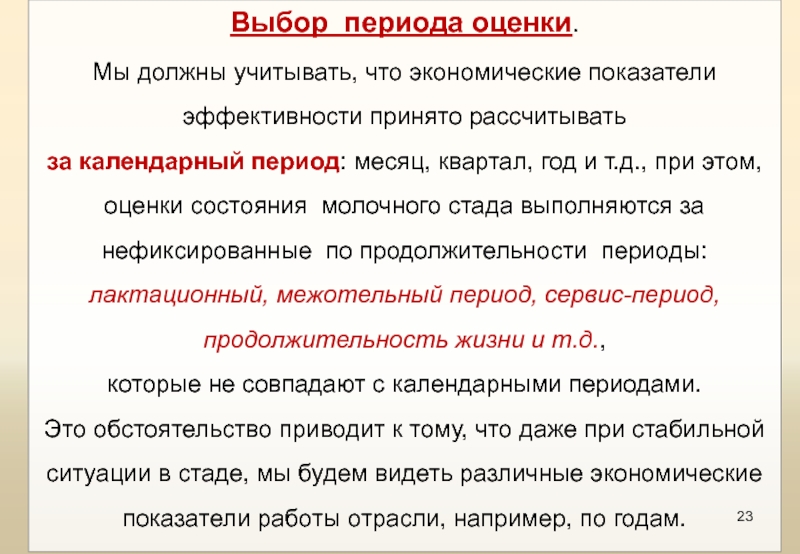 при этом, оценки состояния молочного стада выполняются за нефиксированные по продолжительности периоды: лактационный, межотельный период, сервис-период, продолжительность жизни и т.д.,