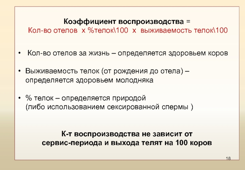 Кол-во отелов х %телок\100 х выживаемость телок\100