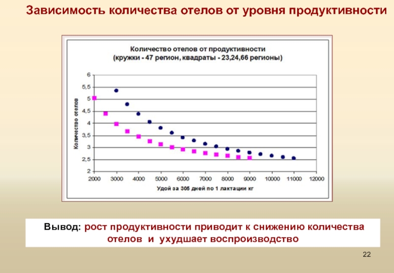 По нашим данным при наличии общей тенденции снижения количества отелов у коров при росте уровня продуктивности