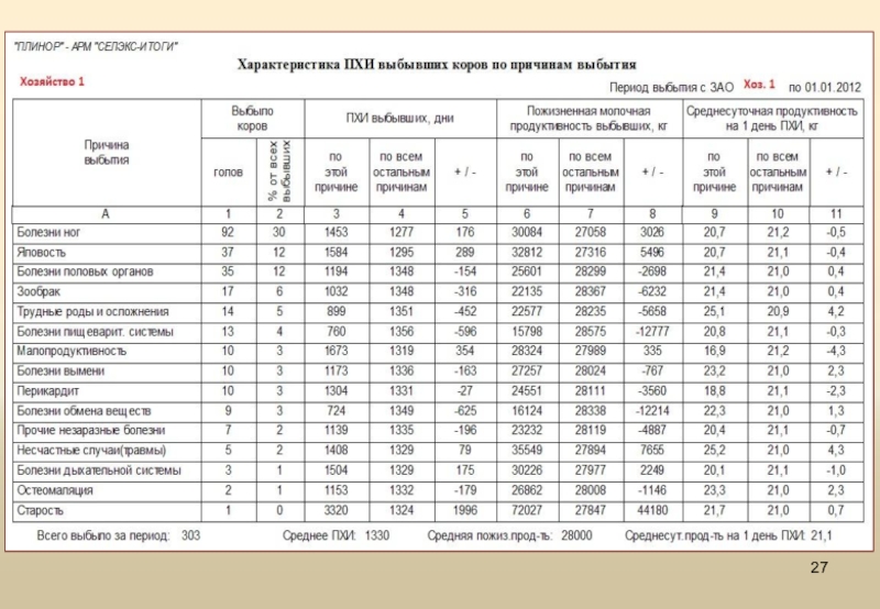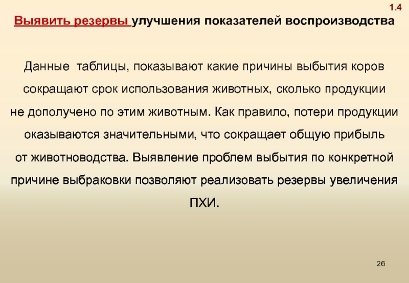 от животноводства. Выявление проблем выбытия по конкретной причине выбраковки позволяют реализовать резервы увеличения ПХИ.