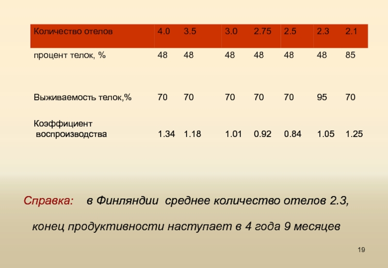 Кол-во отелов за жизнь – определяется здоровьем коров