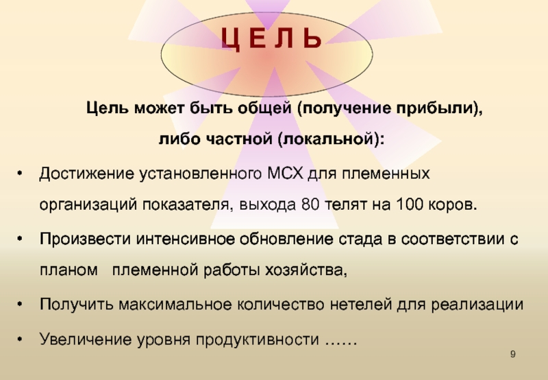 которую мы хотим достичь от воспроизводства (использования) стада,