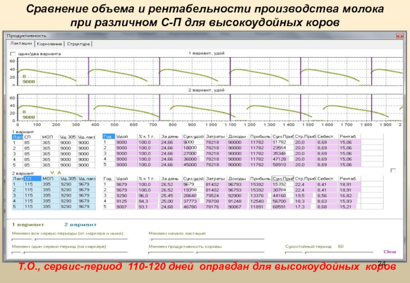 Слайд 24Т.О., сервис-период 110-120 дней оправдан для высокоудойных коров