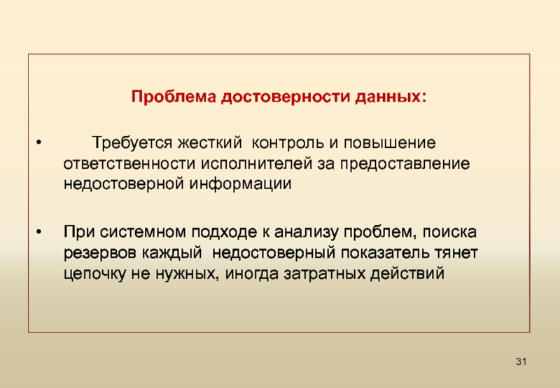 проблем, поиска резервов каждый недостоверный показатель тянет цепочку не нужных, иногда затратных действий