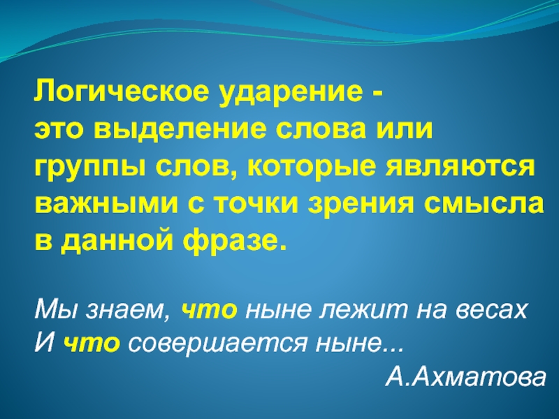 Слайд 3Логическое ударение -