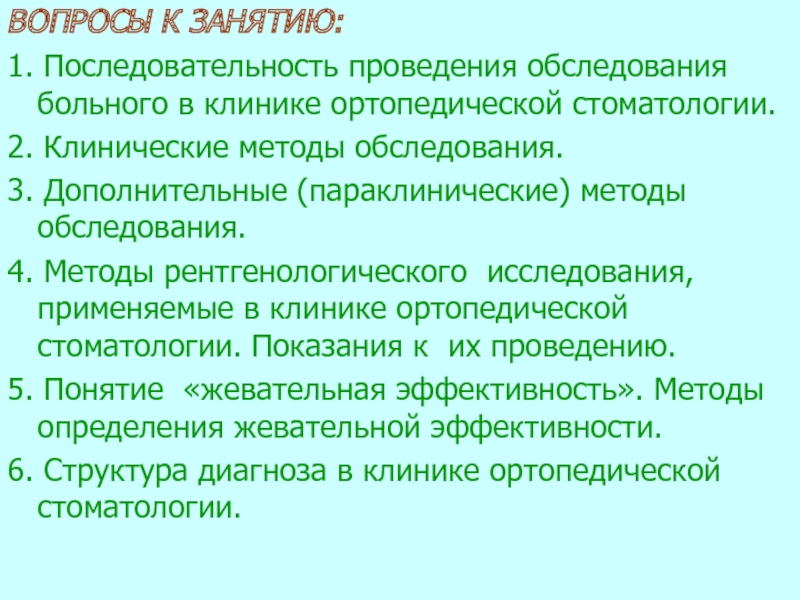 ТЕМА: «Методы обследования больного в клинике ортопедической стоматологии.