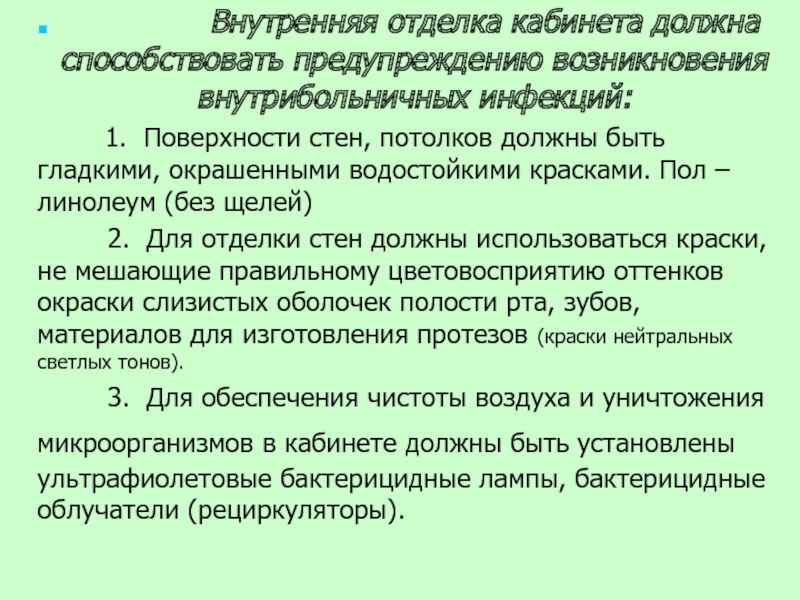 отделка кабинета должна способствовать предупреждению возникновения внутрибольничных инфекций: