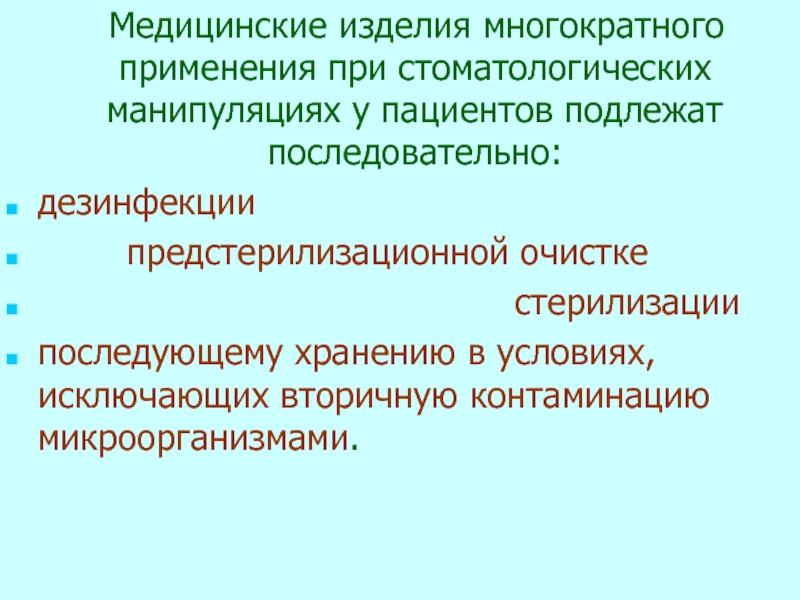 Слайд 30 Медицинские изделия многократного применения при стоматологических манипуляциях у