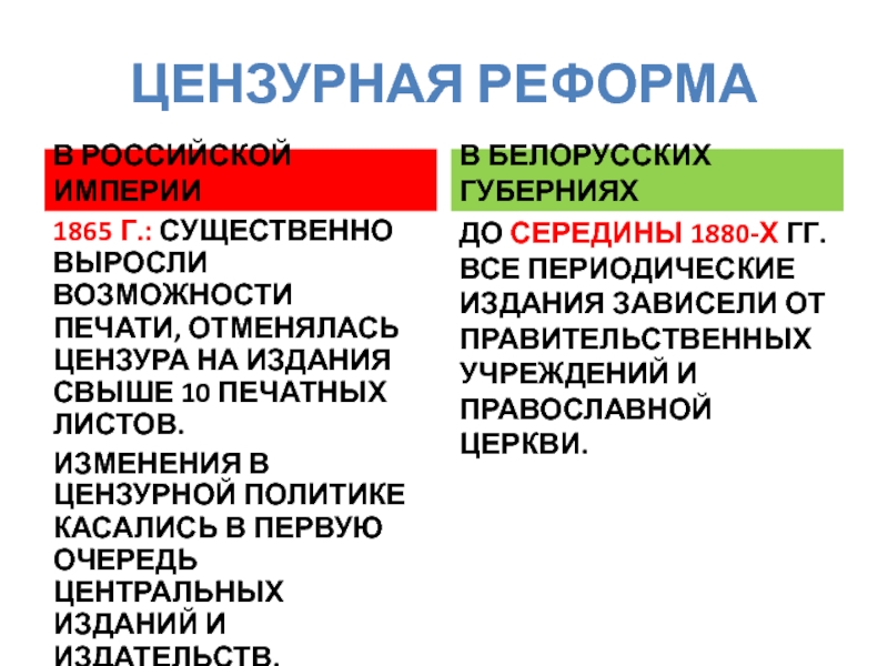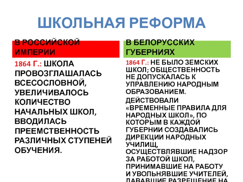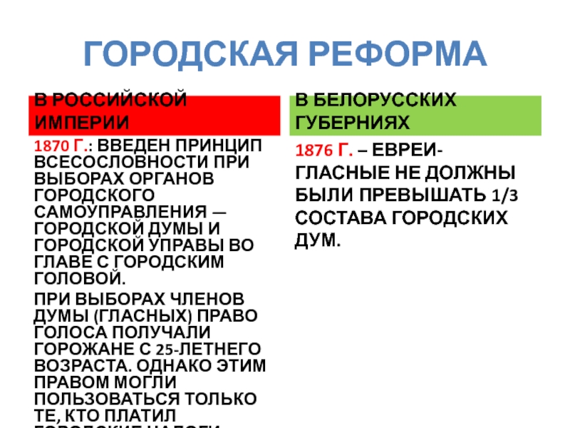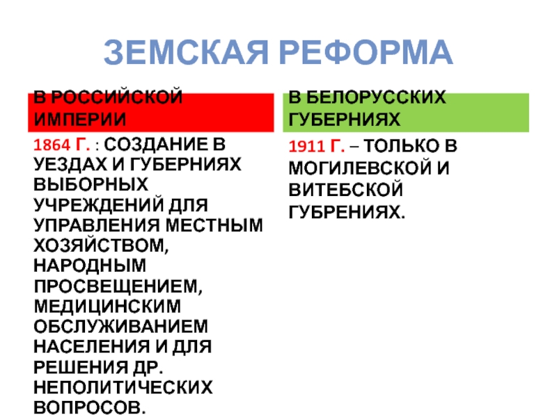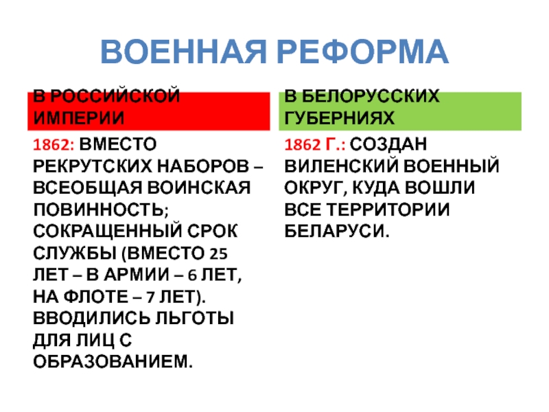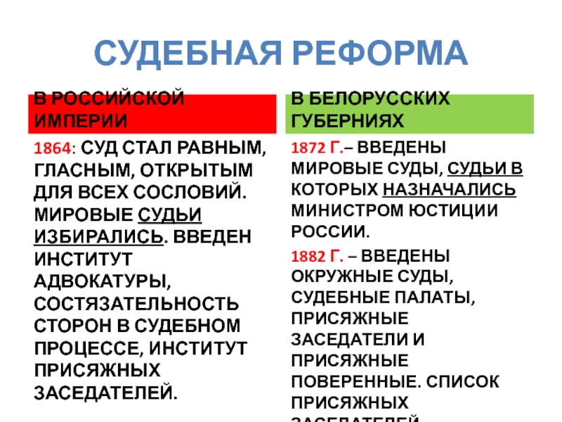БУРЖУАЗНЫЕ РЕФОРМЫ 1860-1870-Х ГГ. И ОСОБЕННОСТИ ИХ ПРОВЕДЕНИЯ В БЕЛАРУСИ.