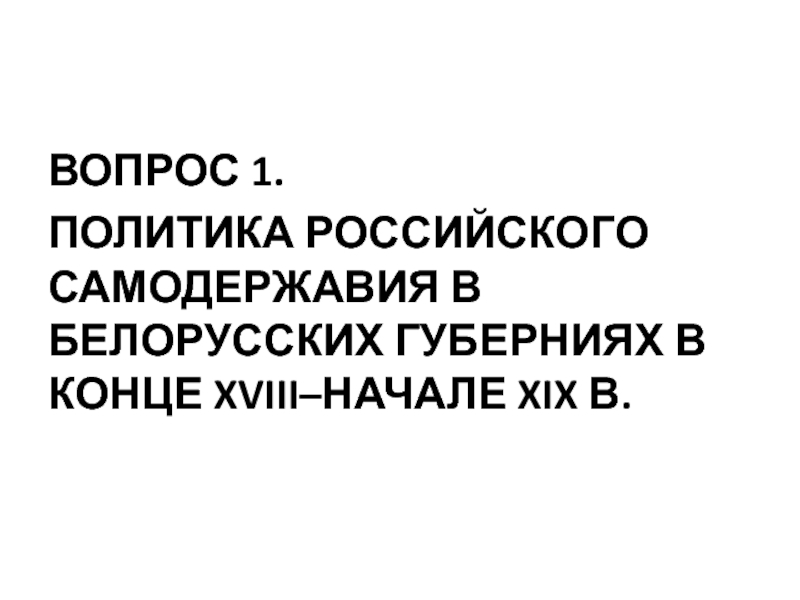 ПОЛИТИКА РОССИЙСКОГО САМОДЕРЖАВИЯ В БЕЛОРУССКИХ ГУБЕРНИЯХ В КОНЦЕ XVIII–НАЧАЛЕ