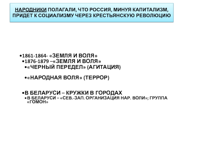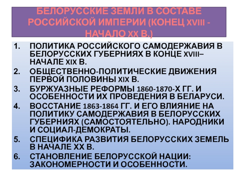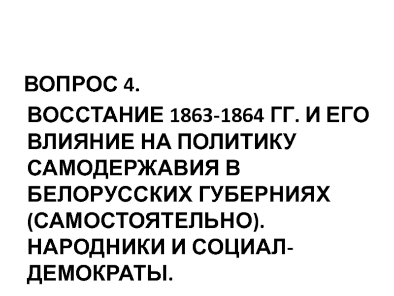 ВОССТАНИЕ 1863-1864 ГГ. И ЕГО ВЛИЯНИЕ НА ПОЛИТИКУ САМОДЕРЖАВИЯ В БЕЛОРУССКИХ ГУБЕРНИЯХ (САМОСТОЯТЕЛЬНО). НАРОДНИКИ И СОЦИАЛ-ДЕМОКРАТЫ.