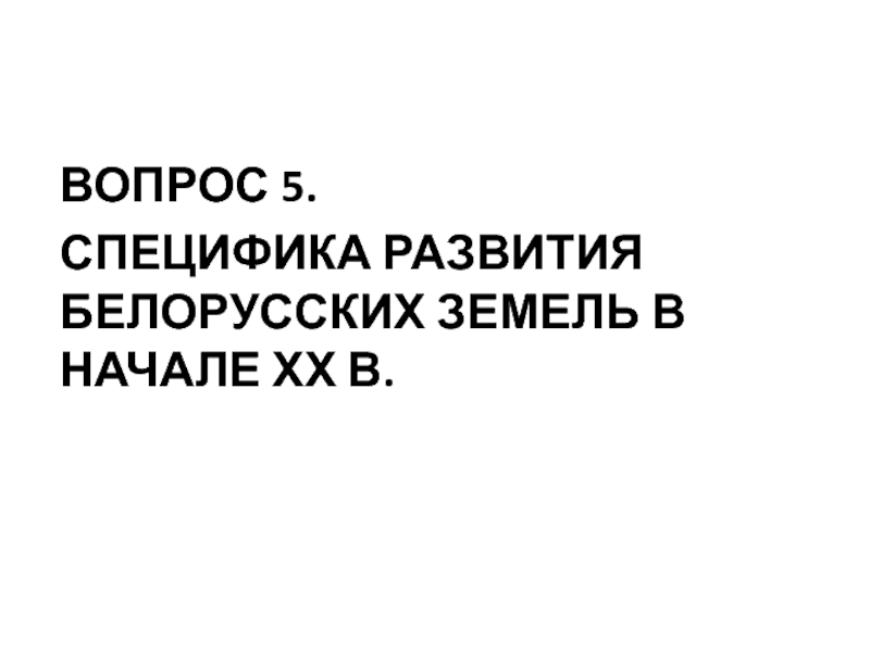 СПЕЦИФИКА РАЗВИТИЯ БЕЛОРУССКИХ ЗЕМЕЛЬ В НАЧАЛЕ ХХ В.
