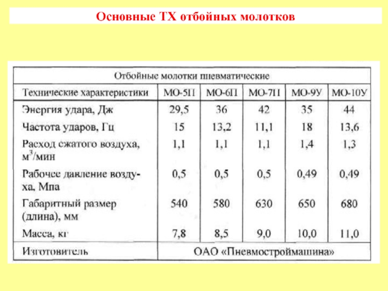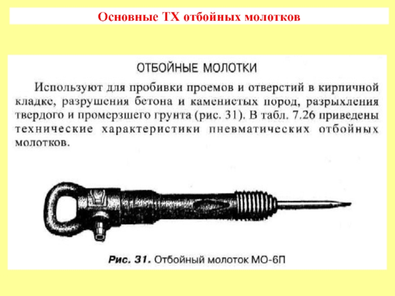Отбойные молотки предназначены для устройства проемов и отверстий в кирпичной кладке, разрушении бетонных и железобетонных конструкций, асфальтовых покрытий и скальных пород, разрыхления прочных и мерзлых грунтов