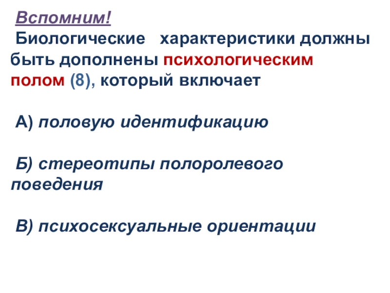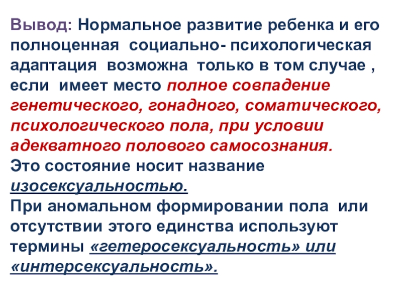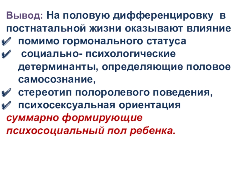 4.Нарушение половой аутоидентификации (нет стойкого осознания