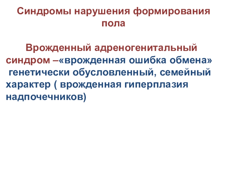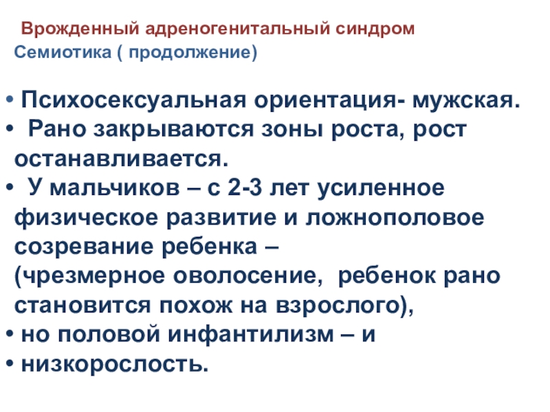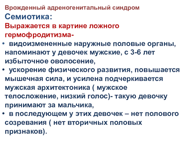 Слайд 57Врожденный адреногенитальный синдром Семиотика: