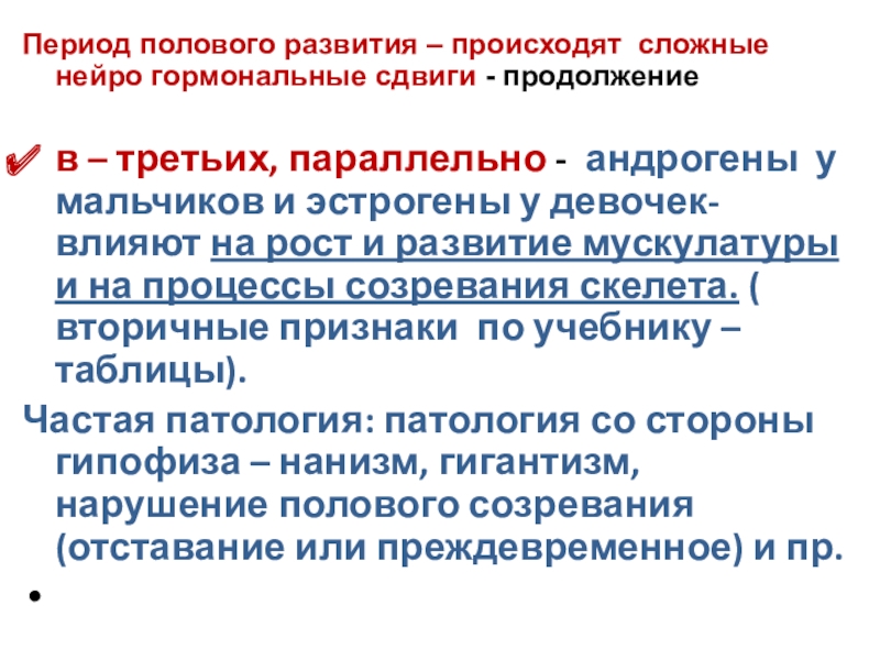 Слайд 12 Период полового развития – происходят сложные нейро -гормональные сдвиги.
