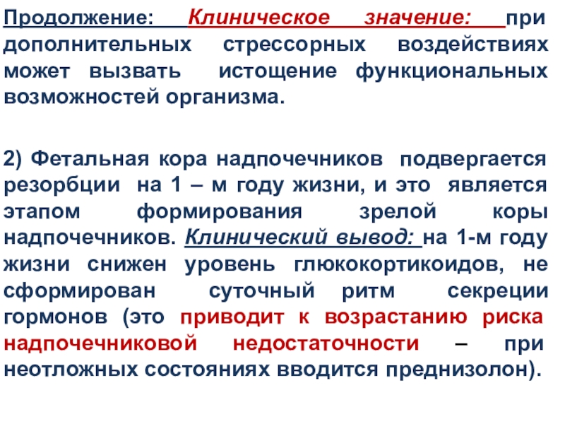 Слайд 7Продолжение: Клиническое значение: при дополнительных стрессорных воздействиях может вызвать истощение