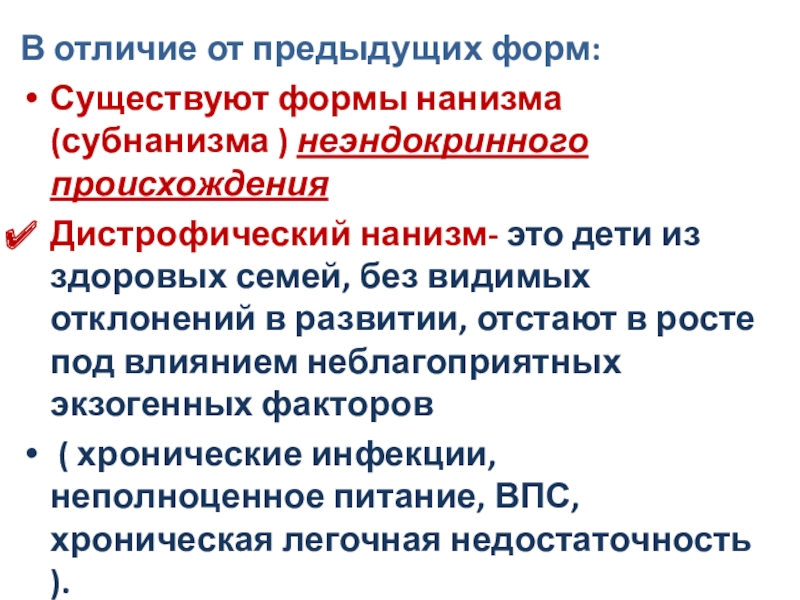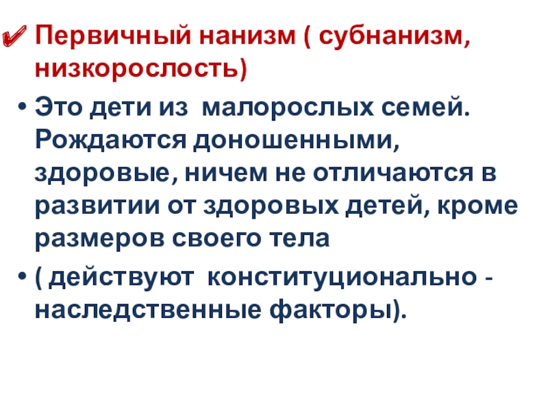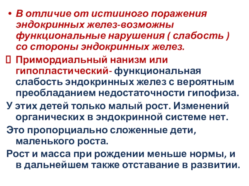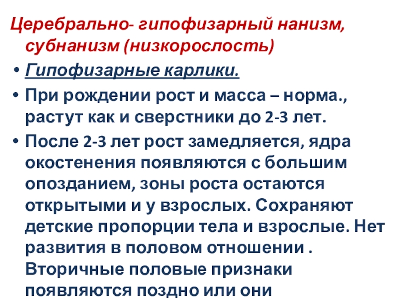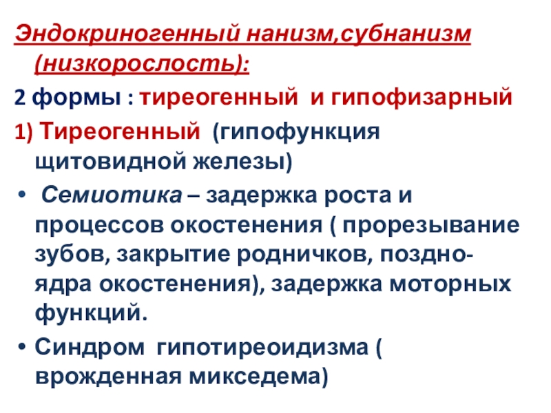 Слайд 17Эндокриногенный нанизм,субнанизм (низкорослость):