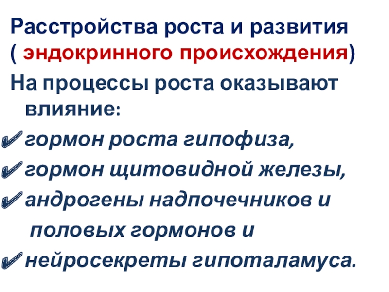 Слайд 2 Влияние эндокринных желез на рост и развитие детского организма