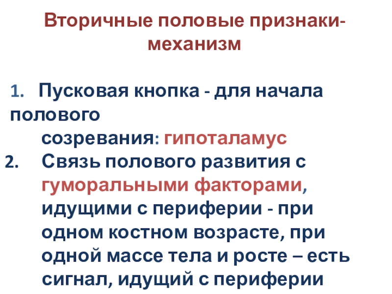 с гуморальными факторами, идущими с периферии - при одном костном возрасте, при одной массе тела и росте – есть сигнал, идущий с периферии